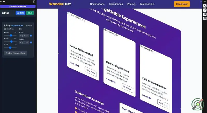 Want to change the headline, swap an image, add a feature section, or update the layout? Just click and tell the AI: “Make this section darker.” “Add a testimonial carousel below.” It updates live — no code, no headache.