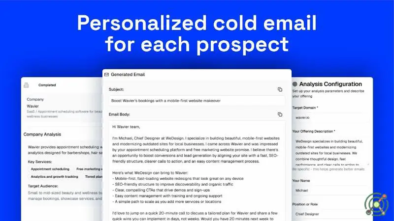 AI-Powered Cold Emailing - Generate personalized cold emails tailored to each prospect’s website.